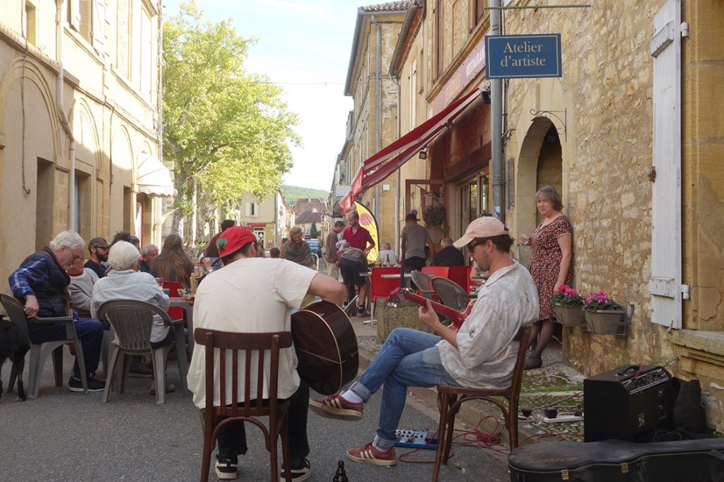 Devant mon atelier, rue de la République, Frankie et Rob donneront un apéritif-concert dimanche vers 11 h. Visionnez la vidéo ci-dessous pour les écouter.